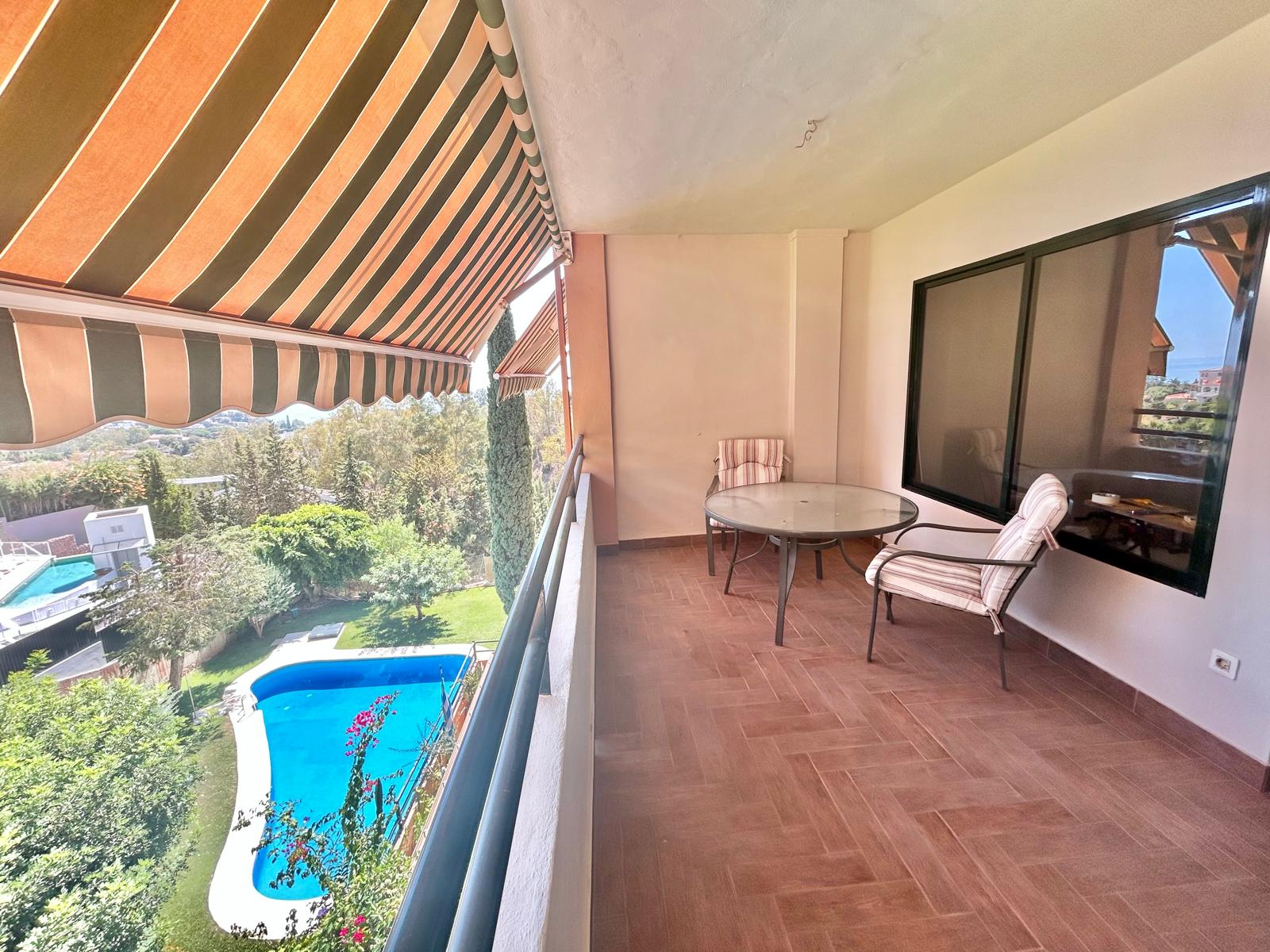 Esta completa propiedad dispone de vistas al mar, terraza; piscina y garaje y trastero en el mismo edificio.