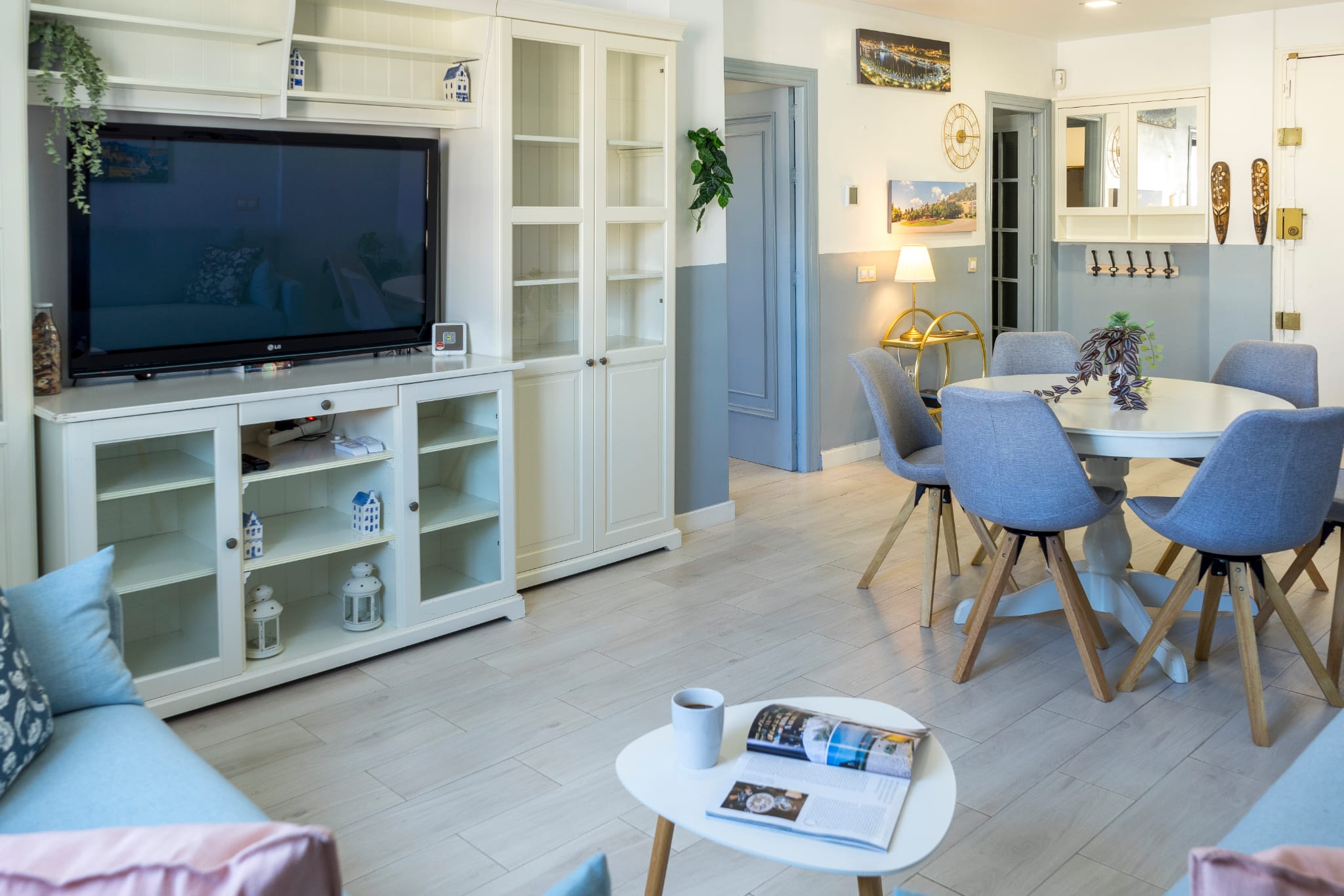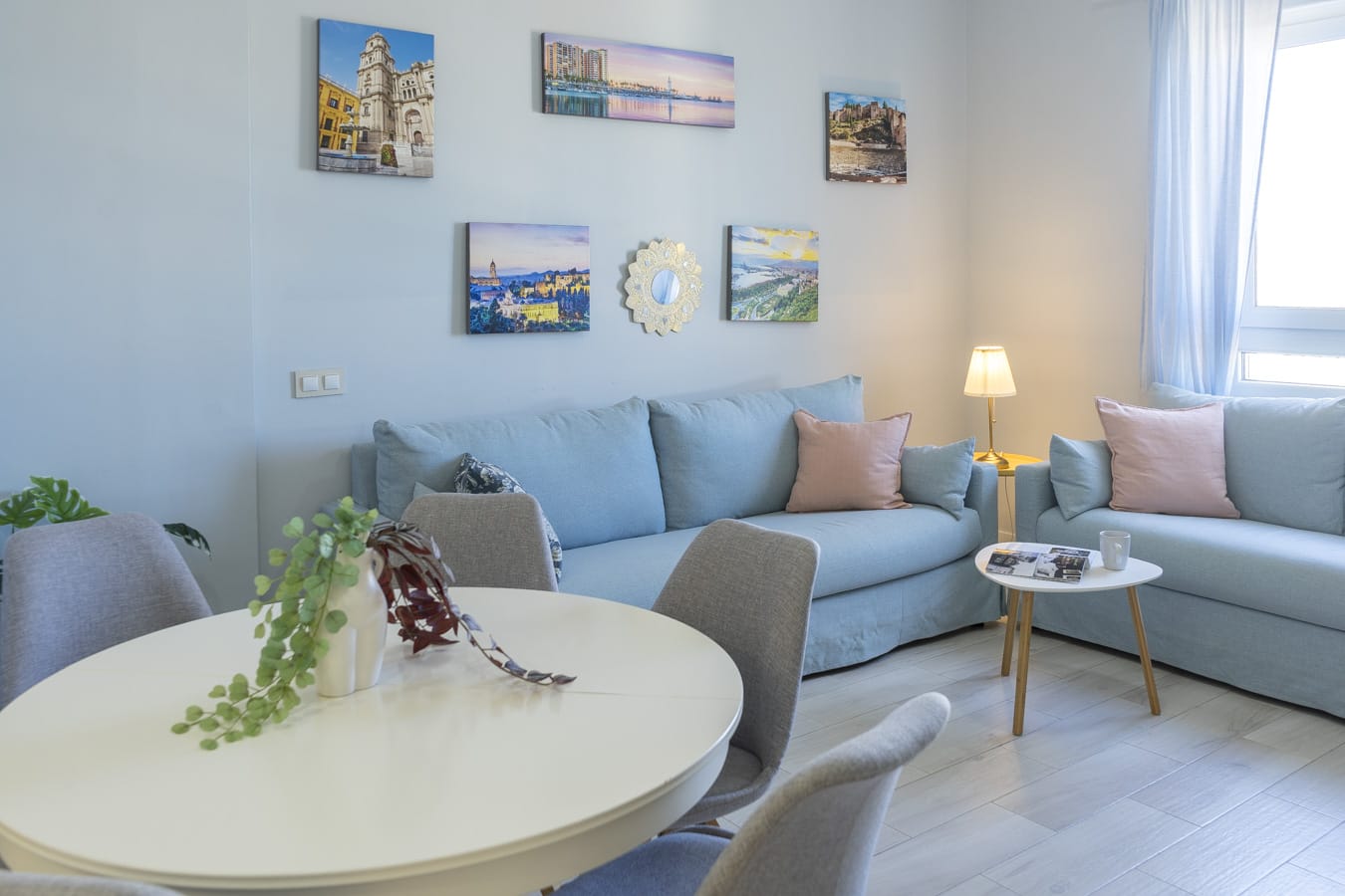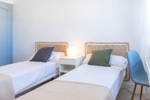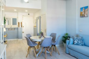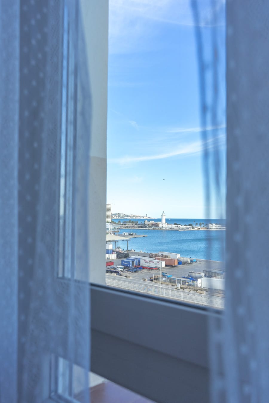 Salón-comedor con vistas al puerto de Málaga; cocina office totalmente amueblada con electrodomésticos. Zona lavadero. Tres dormitorios dobles (dos de ellos disponen de cama de matrimonio y el otro de dos camas individuales). Dos baños ; uno de ellos con ducha y otro con bañera.