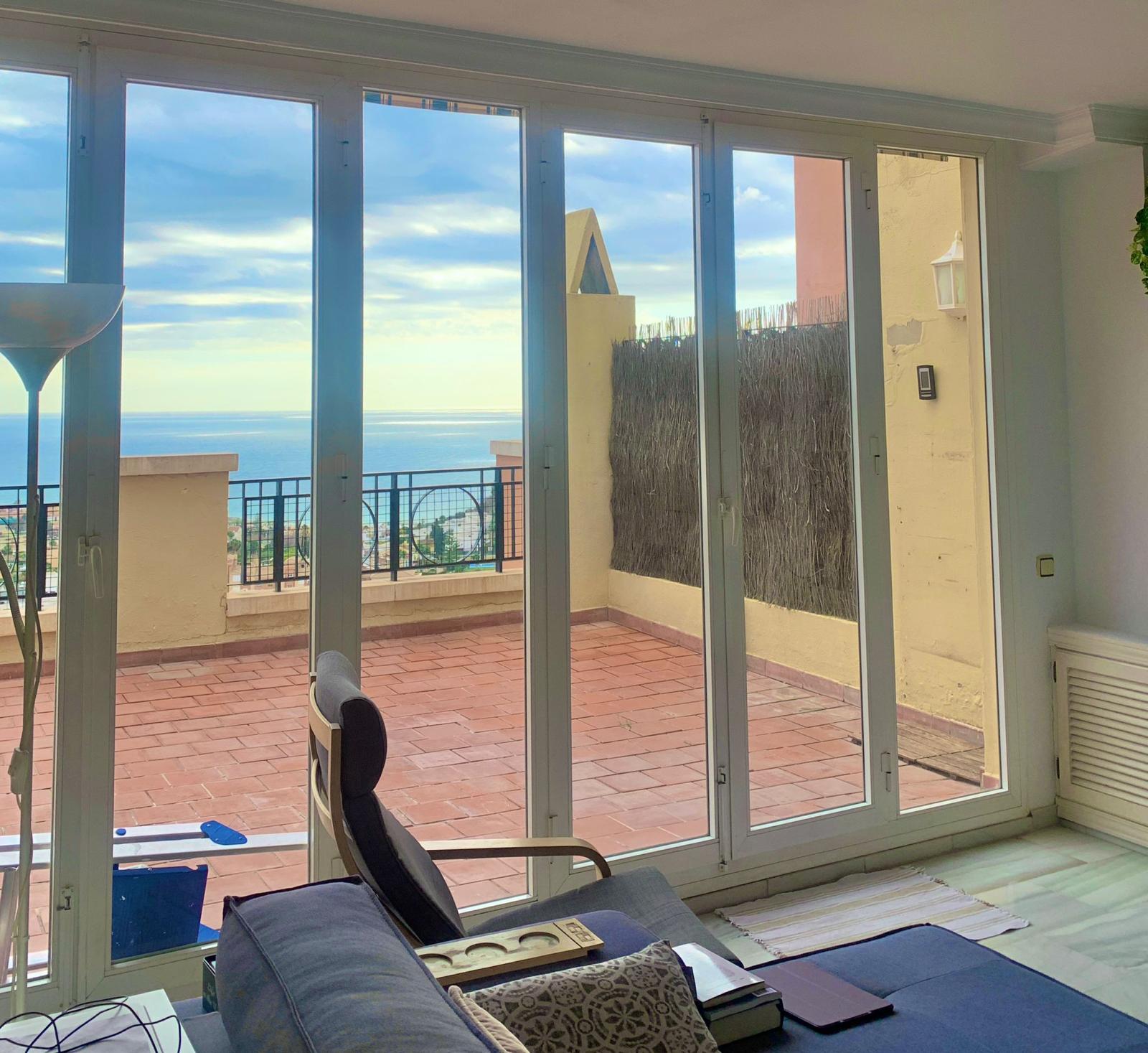 Con 100 m² construidos, este inmueble cuenta con un amplio salón-comedor que se conecta a una terraza de aproximadamente 12 m², perfecta para disfrutar del privilegiado clima malagueño y de las impresionantes vistas al mar.